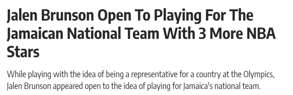 因此,尽管目前国籍问题可能让布伦森暂时无法代表牙买加,但这位尼克斯巨星最终是否会做出这一决定,依然值得期待。